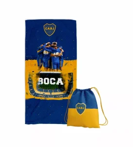 Toallon De Microfibra Estampado Con Mochila Boca Juniors