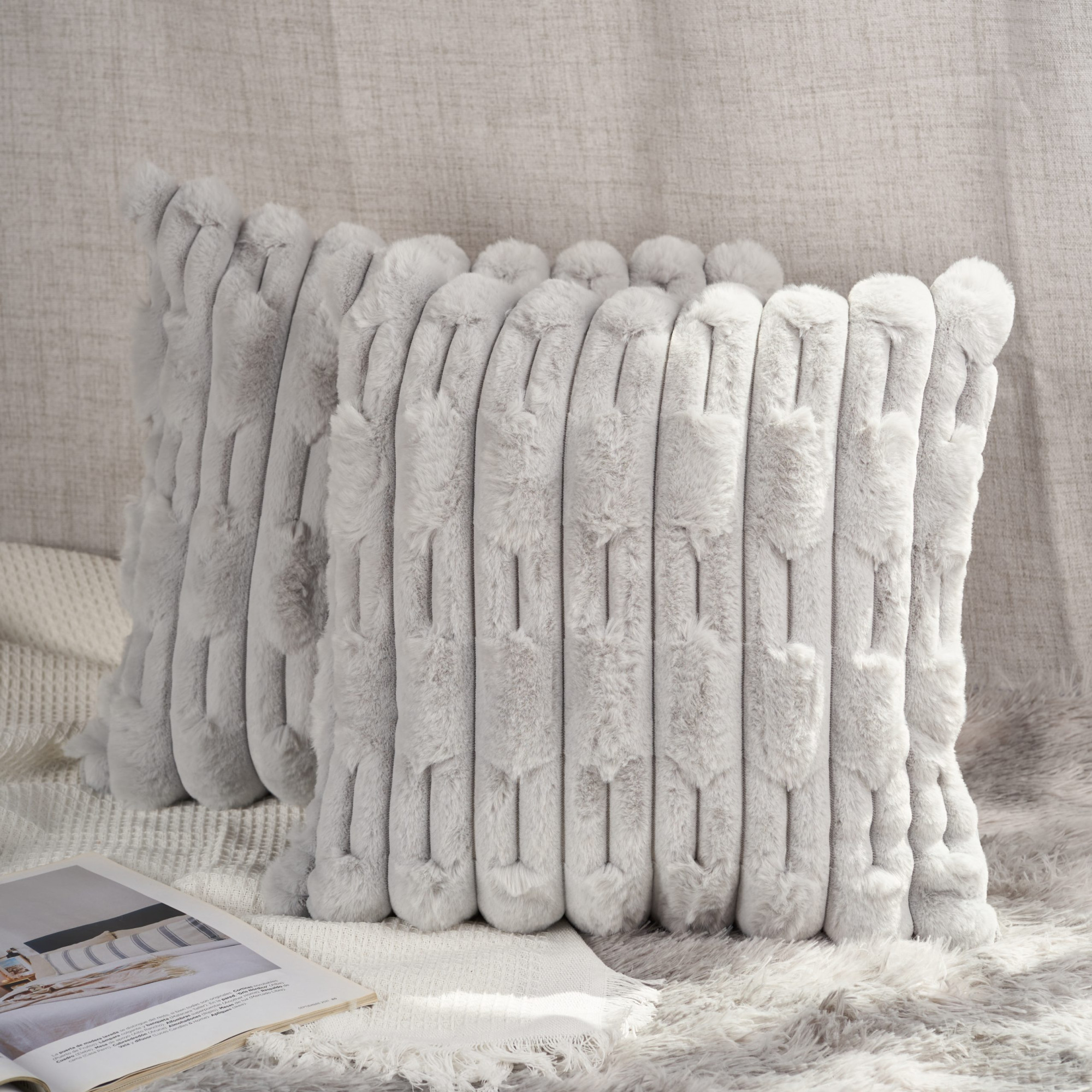 Funda De Almohadones Bloques De Pelo De Conejo 45X45Cm Aprox