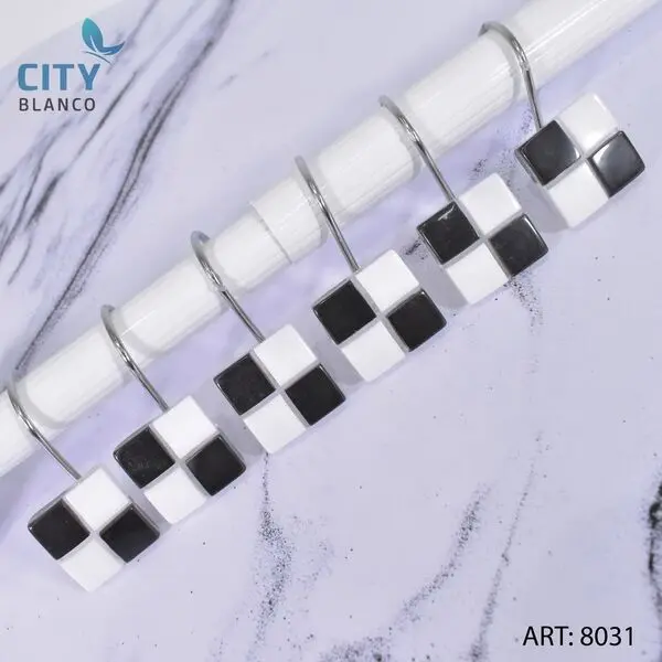 GANCHOS PARA CORTINA DE BAÑO /50%RESINA 50%ACERO/ CANTIDAD POR BULTO 48