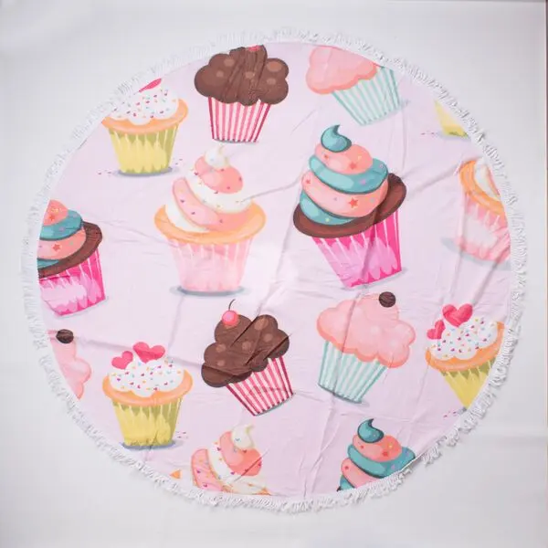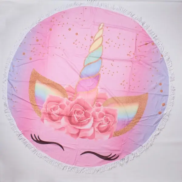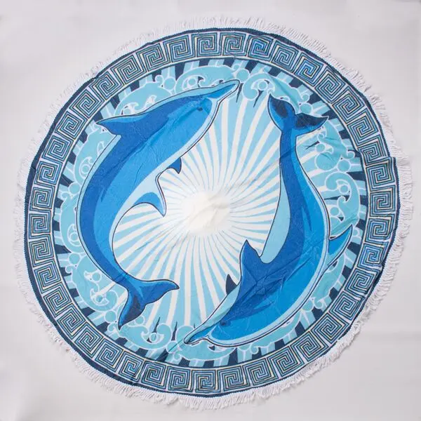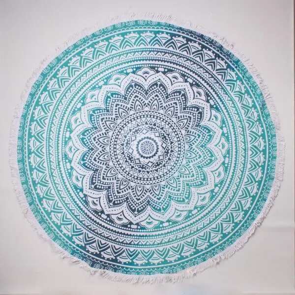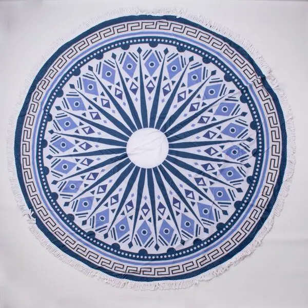 Toallon Microfibra Redondo C/Flecos Mandala Violeta 150Cm Aprox